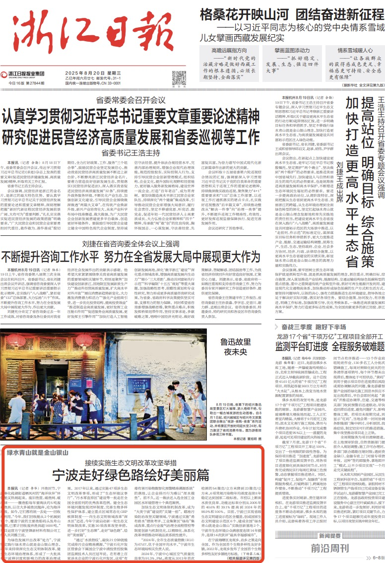 为绿色发展开出改革“处方”,宁波坚定践行绿水青山就是金山银山理念,20年来持续深化生态文明体制改革,健全生态环境治理体系,形成了一大批具有宁波辨识度和影响力的改革治理成果。2017年以来,通过实施47项涉生态文明改革事项,形成了“生态环境议事厅”、“污水零直排区”建设等一批走在全国全省前列的优秀改革范例。健全生态环境问题发现闭环制度、完善生物多样性保护体系、建立重点区域常态化GEP核算制度……向生态文明领域改革“深水区”迈进,今年宁波启动新一轮生态文明体制改革,实施30项改革攻坚举措,进一步打好“生态牌”、走好“绿色路”、绘好“美丽篇”。